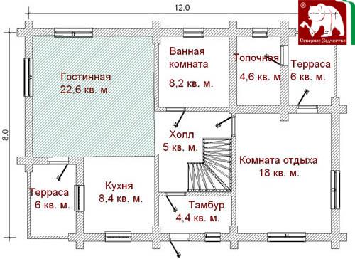 Стоимость дома зависит от количества рубленных внутренних перегородок, диаметра бревна, высоты рубленных стен, сложности конструкции.